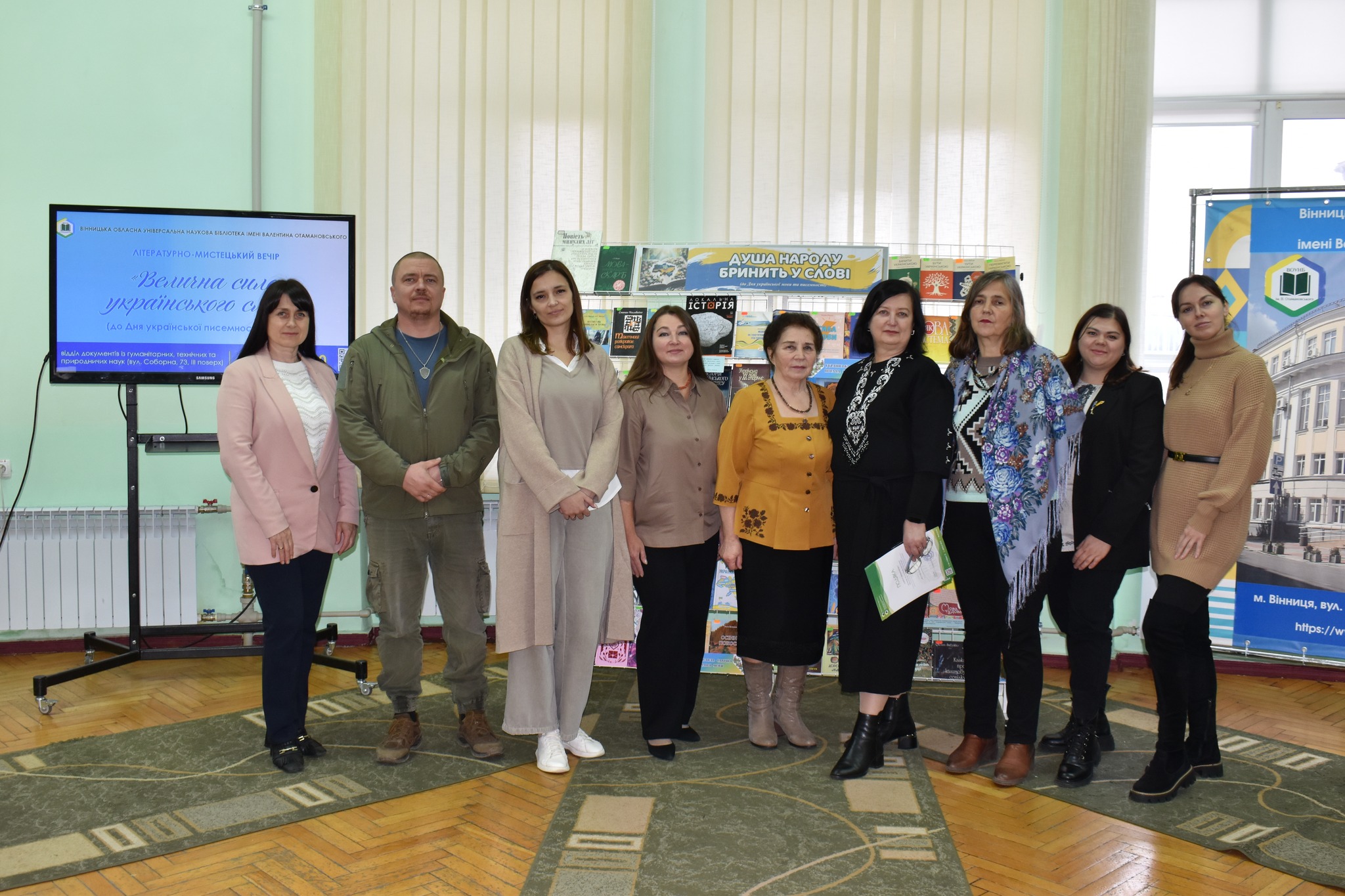 23 жовтня, напередодні Дня української писемності та мови, у Вінницькій обласній універсальній науковій бібліотеці імені Валентина Отамановського, традиційно до свята, відбувся літературно-мистецький вечір «Велична сила українського слова». У заході взяли участь письменники, освітяни, ветерани російсько-української війни, творчі колективи, учнівська та студентська молодь.