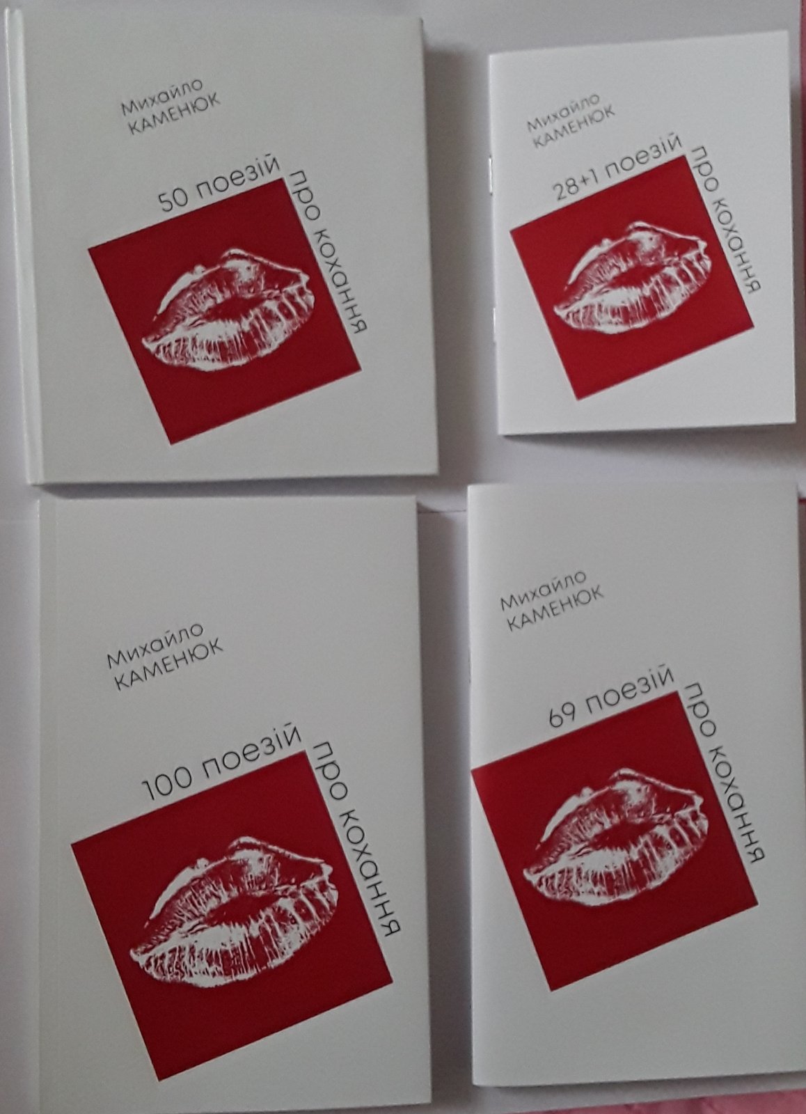 Каменюк_Книги про кохання_обкладинки16 листопада 2025 року. Вийшло у світ нове цікаве видання: касета з 4-х книг, основою яких стало друге, значно доповнене перевидання популярної свого часу збірки інтимної лірики МИХАЙЛА КАМЕНЮКА «ПТАХ БЕЗОДНІ. 100 ПОЕЗІЙ ПРО КОХАННЯ» (видавництво «Заграва»), яка мала наклад у 50 000 примірників.