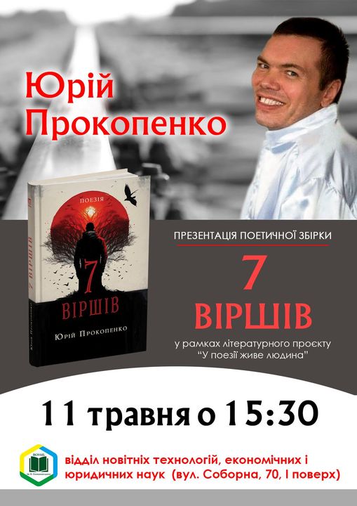Друзі, запрошую всіх охочих на презентацію моєї нової поетичної збірки «7 віршів». 11 травня 2023 року о 15:30 у відділі новітніх технологій, економічних і юридичних наук Вінницької обласної універсальної наукової бібліотеки ім. В.Д. Отамановського (вул. Соборна, 70, філія, І поверх). Мої вірші читатимуть друзі, відомі літератори та актори театру ім.М.Садовського. А в музичних паузах співатиме Олексій Скрипаченко. Хто ще бажає придбати мою книгу, пишіть в особисті повідомлення (поки книга ще є). Нагадую, що купуючи книгу ви допомагаєте не тільки мені, але й українським військовим. Частина коштів з продажу збірки буде передана на підтримку 47 ОМБр «Маґура», де служить мій друг Вадим Приймак. До зустрічі на презентації! Олексій Петрович Скрипаченко Вадим Приймак 47 ОМБр «Маґура»